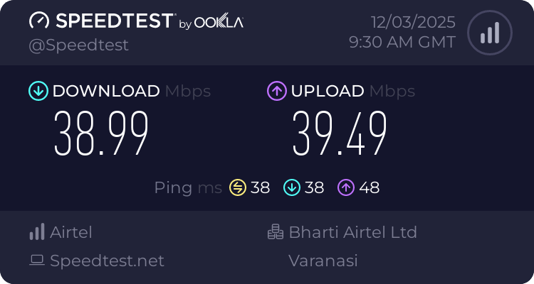 The setup was simple, right after 48 hours of booking, installation engineer arived at my house and did the installation. Since I already had a ready pole on roof, the installation was fast and smooth. The ethernet cabled used in installation of Airtel AirFiber is actually better and strong compared to Jio AirFiber; also Jio installed Cat5E cable while Airtel Installed Cat6 cable for the same installation.